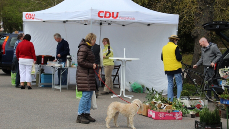 Auch dieses Jahr rief die CDU die Bargteheider auf, alle ihre Gartenschätze mit einem Stand zu präsentieren. Der Ruf ,,Alles was den Garten schöner macht" ging nicht ins Leere, denn auf dem Utspann-Parkplatz konnte Bürgervorsteherin Cornelia Harmuth und Ortsvorsitzender Stefan Dehns mit anderen Christdemokraten 27 Hobbygärtner begrüßen, die an ihren Ständen ihre Pflanzen, Sträucher oder auch Dekorationen feilboten. Über 300 Gartenfreunde schlenderten bei herrlichem Frühlingswetter über diesen traditionellen Flohmarkt und schauten nicht nur, sie wurden auch fündig. Weil sich viele Besucher kannten ließ ein Plausch nicht lange auf sich warten. ,,Wir haben für unseren traditionellen Gartenflohmarkt wieder das Frühjahr gewählt, denn jetzt ist die richtige Zeit, die Gärten wieder für die sommerliche Jahreszeit zu gestalten und zum Blühen zu bringen. ,,Der Zeitpunkt war wieder eine gute Wahl, denn sehr viele Gartenfreuden wechselten bei strahlendem Sonnenschein die Besitzer", freut sich nicht nur Dehns, sondern auch die Organisatoren des Flohmarktes aus der CDU.