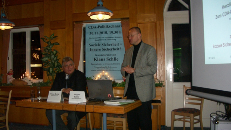 Um mit unseren Gast, dem Kieler Innenminister Klaus Schlie, das Thema „Soziale Sicherheit = Innere Sicherheit“ zu diskutieren, führte die Stormarner CDA ihre Politikschnackrunde diesmal in Ahrensburg durch.