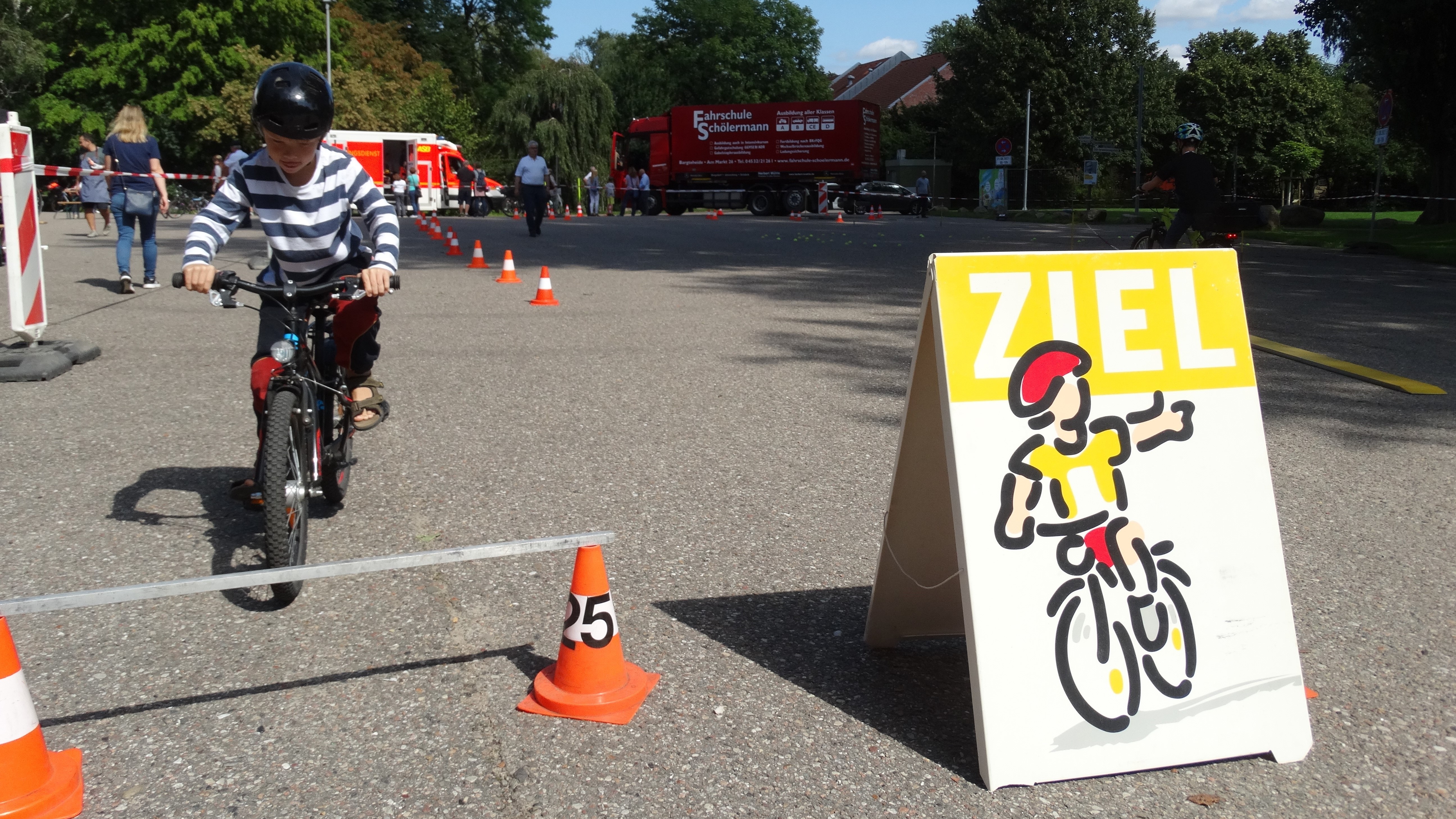 Dafür organisierte die CDU Bargteheide ein Rundum-Paket, für das sie zahlreiche kompetente ehrenamtliche Helfer hatte gewinnen können. Ein Fahrrad-Verkehrsexperte vom ADAC Schleswig-Holstein e. V. bereitete einen Parcours mit acht nicht ganz einfachen Aufgaben zu Geschicklichkeit, Übersicht und Koordination vor, auf dem die Fahrtüchtigkeit der Kinder und Jugendlichen getestet wurde. Zuvor überprüfte die Verkehrswacht Fahrräder und Ausstattung (Helmpflicht!) aller Teilnehmer*innen, nach Beanstandungen führten Mitarbeiter von Radsport Runge kleine Reparaturen sofort aus. Außerdem präsentierte ein Fahrlehrer der Fahrschule Schölermann allen Besuchern, welchen Rundumblick Fahrer*innen von ihrer erhöhten Sitzposition am Steuer eines LKW haben, sodass sich Kinder und Jugendliche, aber auch Erwachsene, anschaulich vorstellen konnten, wie gefährlich der tote Winkel für Radler*innen werden kann. Mitarbeiter eines Rettungswagens zeigten und erklärten den Teilnehmer*innen, wie ihr Fahrzeug ausgestattet ist. Und für kleine Imbisse hatte die CDU mit Wurststand und Kuchen gesorgt.