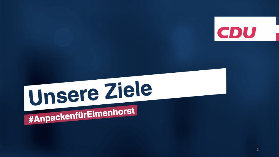 Unsere Gemeinde soll lebenswert bleiben – mit all ihren Facetten. Dafür setzen wir uns ein. Nicht rückwärtsgewandt, sondern mit dem Blick nach vorn. Für eine Zukunft für alle - in unserem schönen Elmenhorst