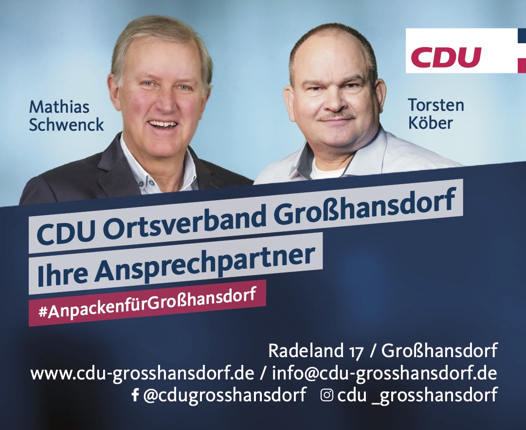 AnsprechpartnerMathias Schwenck E-Mailinfo [at] cdu-grosshansdorf.de Homepagehttp://www.cdu-grosshansdorf.de/