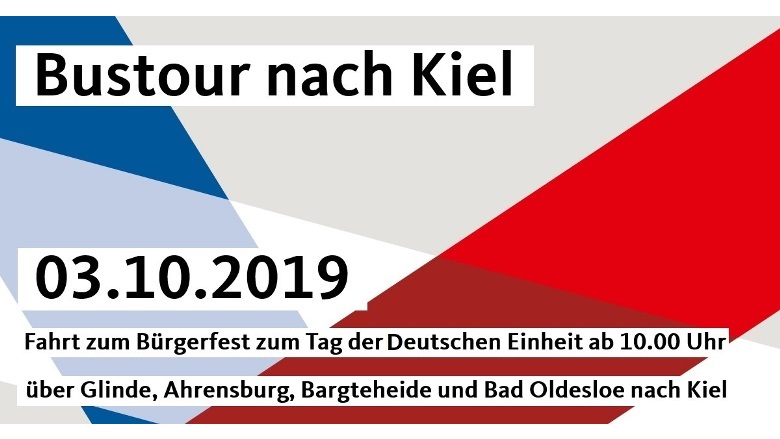 Daher möchten wir gerne eine Busfahrt nach Kiel anbieten, die in Glinde starten und Mitreisende auch in Ahrensburg, Bargteheide und Bad Oldesloe aufnehmen wird. Die Fahrt beginnt um 10.00 Uhr, in Kiel ist ein Aufenthalt von etwa vier Stunden vorgesehen, zurück geht es um 17 Uhr. Vor Ort haben Sie die Zeit zur freien Verfügung.